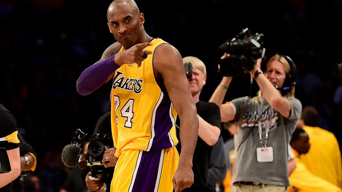 Kobe Bryant dei Los Angeles Lakers reagisce prima di affrontare gli Utah Jazz allo Staples Middle il 13 aprile 2016 a Los Angeles, California. (Harry How/Getty Pictures)