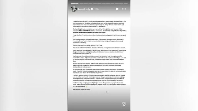 “Per Blake Vigorous, la più grande misura di giustizia è che le persone e le strategie dietro questi attacchi digitali coordinati siano state smascherate e siano già ritenute responsabili da altre donne che hanno preso di mira. testimoniando al processo e continuare a far luce su questa forma feroce di ritorsione on-line in modo che diventi più facile da individuare e combattere”, ha continuato.