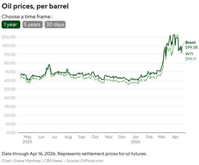 Prezzi del petrolio è balzato dopo l’inizio della guerra in Medio Oriente, il 28 febbraio, sfiorando a volte quasi i 120 dollari al barile. I costi sono aumentati a causa del rallentamento del traffico attraverso lo Stretto di Hormuz, un’arteria chiave per le spedizioni di petrolio attraverso la quale normalmente scorre un quinto della fornitura mondiale di petrolio.