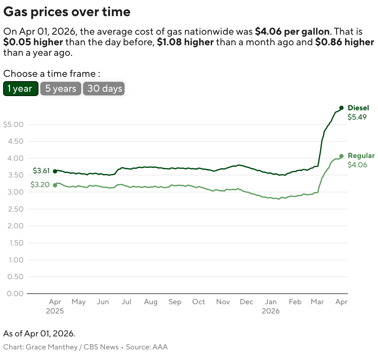 Il presidente Trump ha detto martedì a CBS Information che i prezzi del gasoline scenderanno “quando partiremo, quando sarà finita”.