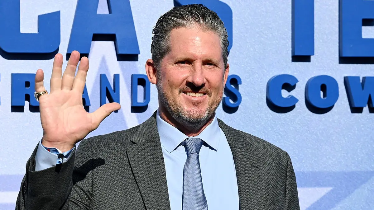 Steve Beuerlein saluta un evento Netflix per “America’s Crew: The Gambler and His Cowboys” all’Egyptian Theatre di Los Angeles, California, l’11 agosto 2025. (Gilbert Flores/Selection tramite Getty Photographs)