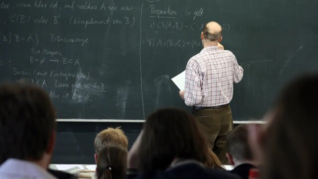 Un professore scrive su una lavagna. (Immagini Getty)