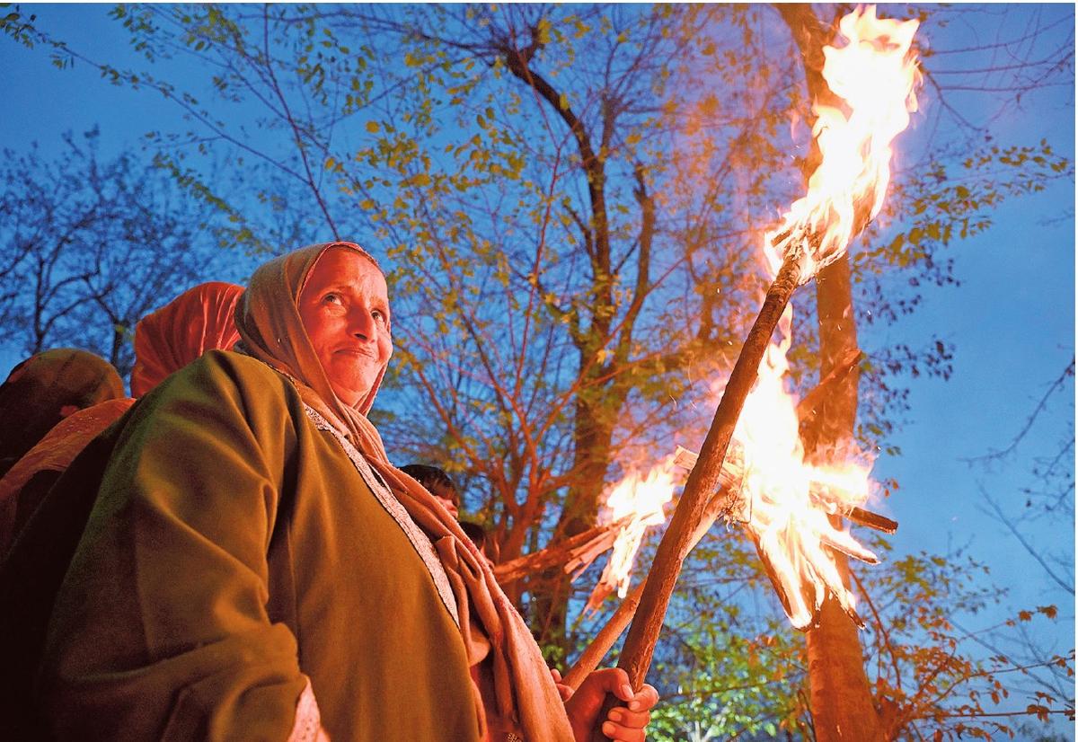 Aumento delle fiamme: durante il competition annuale le persone tengono in mano torce di legno accese che simboleggiano la vittoria sul male.
