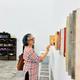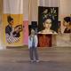 Olympe Ramakrishna con il trittico dipinto in mostra | Credito fotografico: ACCORDO SPECIALE