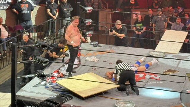 Marshall è stato aperto, ma non aveva finito. Hauser stava cercando di infliggere più dolore. Ha sistemato un tavolo vicino a un angolo del ring e ci ha versato sopra delle puntine da disegno. Marshall è riuscito a lanciare una powerbomb su Hauser attraverso il tavolo virato.