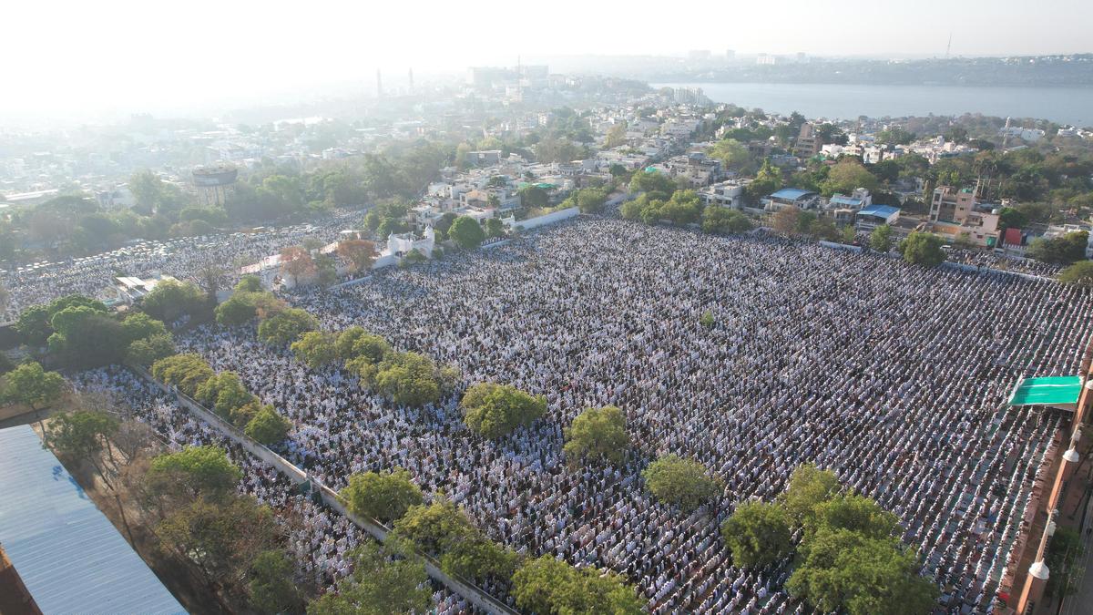 Fedeli offrono Id-ul-Fitr Namaz all’Eid Garh a Kaloor a Kochi il 20 marzo 2026. Il Kerala celebra l’Id un giorno prima rispetto al resto dell’India a causa dei diversi rapporti sull’avvistamento della luna.