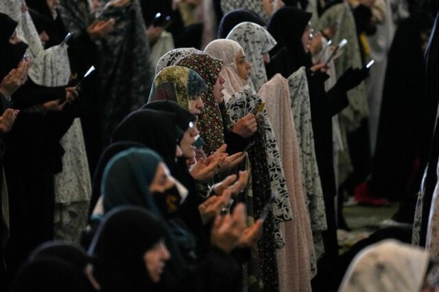 Donne musulmane offrono preghiere Id-ul-Fitr a Chennai, Tamil Nadu, il 21 marzo 2026.