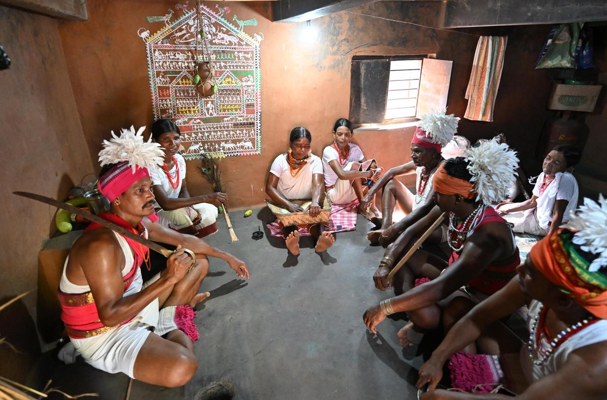 In sessione: i membri della comunità prendono parte a un rituale tradizionale. Il gruppo risiede principalmente nelle regioni boscose dei distretti di Rayagada e Gajapati dell’Odisha.