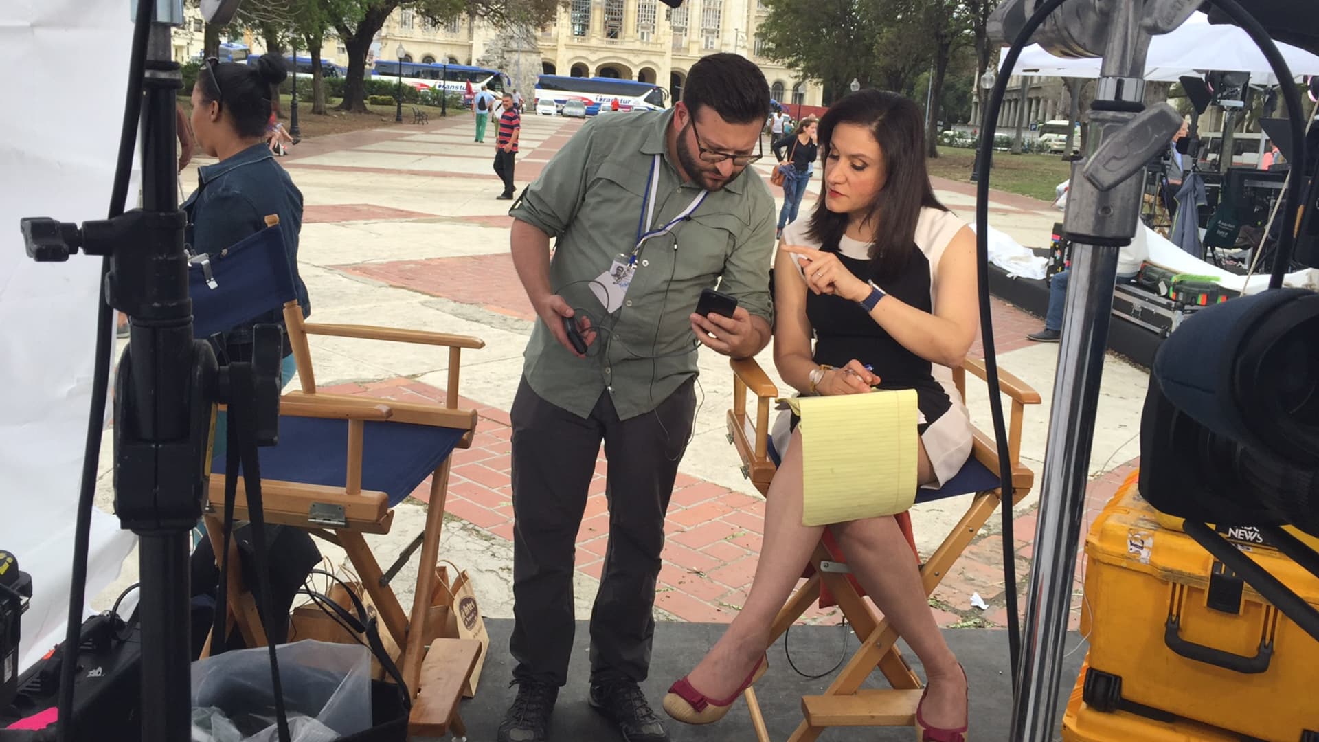 Justin Solomon della CNBC, impegnato nella produzione a Cuba, con la corrispondente Michelle Caruso-Cabrera