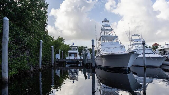 Una vista dello scivolone dello sviluppatore Rishi Kapoor al Cocoplum Yacht Membership il 14 agosto 2023, a Coral Gables, Florida. La posizione attuale del suo yacht è sconosciuta. (Matias J. Ocner/Miami Herald/Tribune Information Service tramite Getty Pictures)