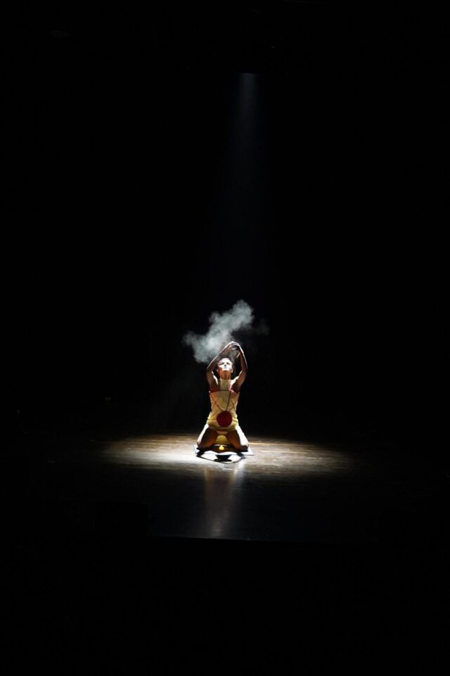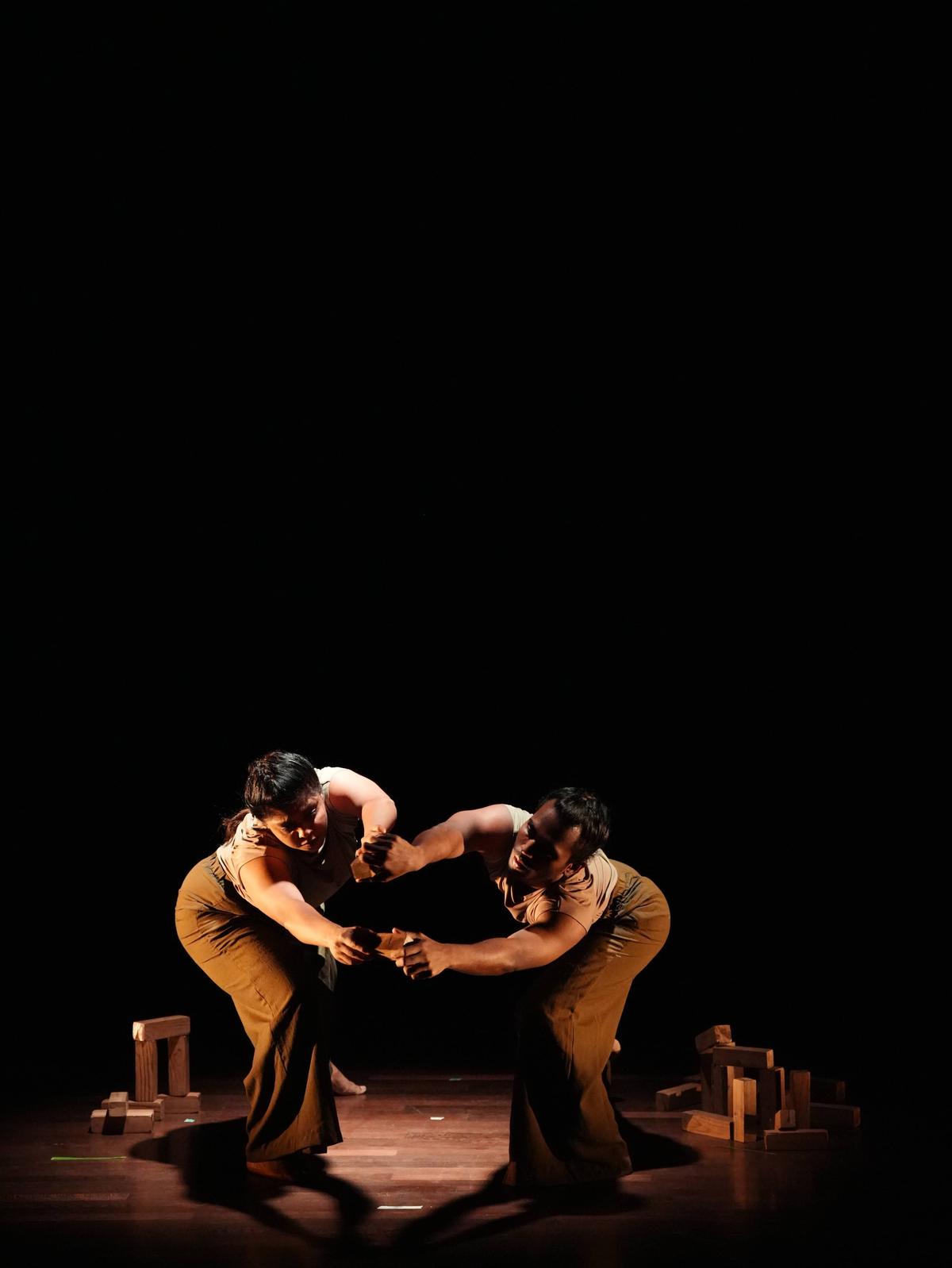 Di Abrar Saqib Saturno è la mia spina dorsale e quello di Harini Meraki Tit per tat erano i più cinematografici. Il lavoro di Saqib ci ha trasportato nel bagliore rosso di una grotta infestata da un coro di voci primordiali e gutturali. Period come se ci fossimo imbattuti nel rituale di un guerriero: una preghiera che intercede presso gli dei per ottenere forza e un’impalcatura contro il destino. La coreografia di Meraki incanalava una creatura femminile simile a un aracnide mascherata da una foglia di banana, presa in trance spirituale. Saqib e Meraki si rispecchiavano a vicenda in quanto erano riproposizioni contemporanee di rituali spirituali.