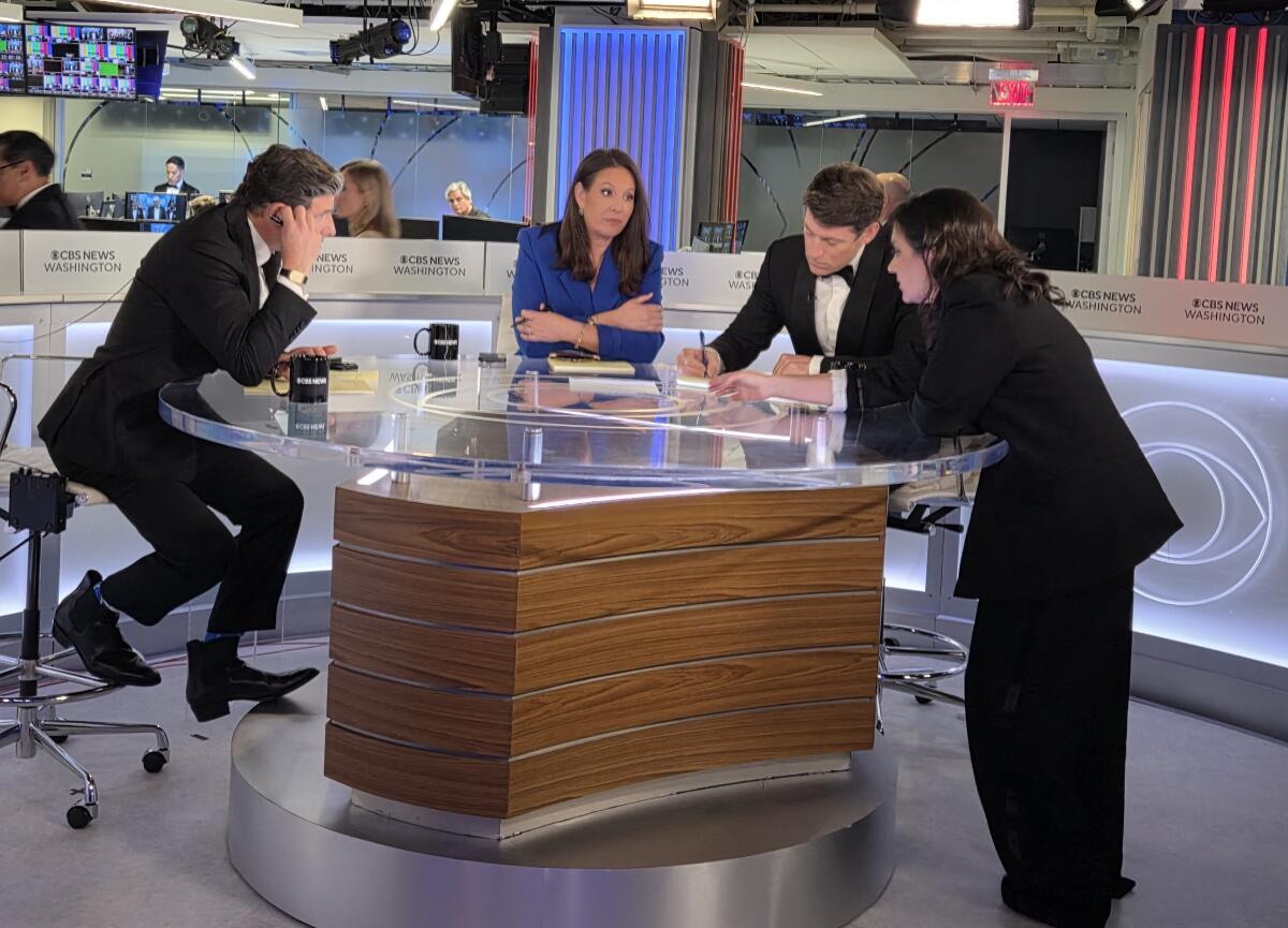 Matt Gutman, Nancy Cordes, Tony Dokoupil e Bari Weiss all’ufficio di CBS Information a Washington il 25 aprile 2026.