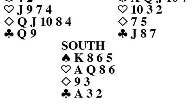 La partita di oggi è stata giocata di recente in Europa, dove i giocatori sperimentano idee di dichiarazione che di solito non si vedono in Nord America. La risposta di North, negando una causa importante, è una di queste idee. Nord-Sud puntano ad un contratto normale per poi essere raddoppiati dall’Est. Questo era un contro di punta, che richiedeva l’attacco del primo seme del morto, in questo caso picche. Nord, con un enorme club sconosciuto in forma con il partner, è corso a quattro fiori e Sud ha rilanciato al gioco. Ovest puntualmente ha puntato il quattro di picche fino all’asso di Est, ed Est ha continuato con la regina di picche fino al re di Sud. Sud ha incassato l’asso e il re di fiori, poi ha incassato due quadri alti e ha puntato un quadri per un combattente nella sua mano. East poteva fare quello che voleva con il maestro briscola, ma non poteva annullare il contratto.