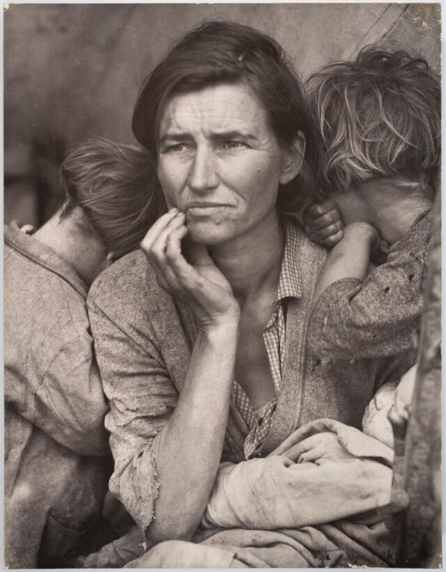 Dorothea Lange, “Migrant Mom”, Nipomo, California, 1936. Stampa alla gelatina d’argento, 18 3/4 x 14 1/2 pollici.