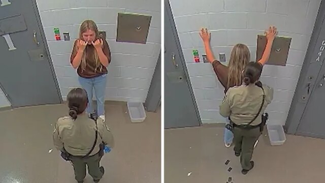 Guarda la clip… puoi vedere Kendra in attesa di istruzioni mentre è seduta su una panchina all’interno della struttura carceraria. Viene quindi portata in un’altra parte della stanza, dove viene perquisita da un funzionario che prima le chiede di appoggiare le mani sul muro.