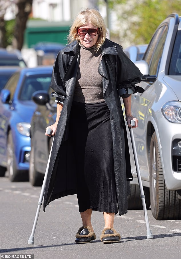 La star di EastEnders Michelle Collins viene vista usare le stampelle e indossare un tutore per le gambe dopo essere corsa al pronto soccorso dopo una dolorosa caduta