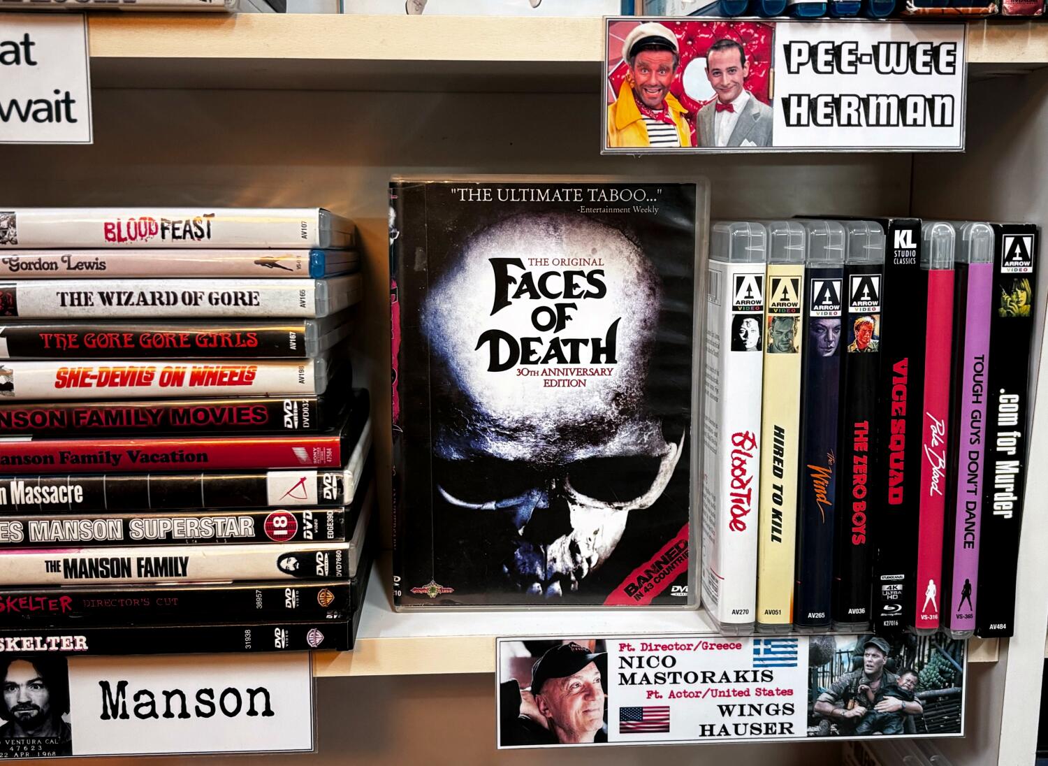 Secondo la copertura del Occasions dell’incidente e della successiva causa legale, le scene mostrate in classe includevano autopsie, cadaveri in decomposizione e animali vivi macellati, mutilati e torturati. L’originale “Faces of Demise” embody anche scene di un uomo che viene fulminato, una decapitazione e un’orgia durante la quale un uomo viene sventrato da un culto carnivoro.