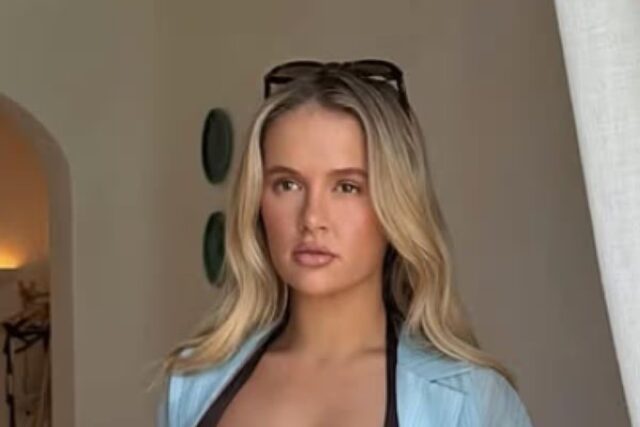 Molly-Mae ha ora condiviso un nuovo aggiornamento sui social media ed è stata descritta come “raggiante” mentre mostrava il suo pancione al sole dopo un recente viaggio di lavoro insieme a LookFantastic. Nello scatto della digital camera d’albergo, la futura mamma ha mostrato la sua figura incinta in un bikini marrone, che indossava con una camicia a righe blu slacciata e pantaloni abbinati.
