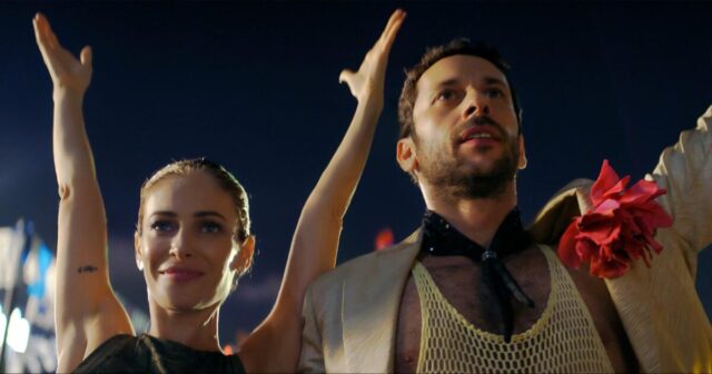 Sicuramente, “Sì” aumenta notevolmente la buffoneria, segnalando una maggiore volontà di ferire gli spettatori. Sminuiti dalle gigantesche bandiere israeliane e fissati in un costante stato di orgoglio ipernazionalista, i personaggi di Lapid sono creazioni satiriche: brutali generali dell’IDF, un losco miliardario russo su uno yacht (Aleksey Serebryakov di “Anora”) e portavoce abbronzati di Trump con schermi telefonici surreali al posto della testa. Mentre danno un boccone di bistecca sotto il tavolo, Y e Yasmin sanno che la loro mancata carriera è destinata a finire. Quindi, quando Y riceve una commissione redditizia, invitandolo a comporre un inno patriottico per la “generazione della vittoria”, sai già qual è la sua risposta.