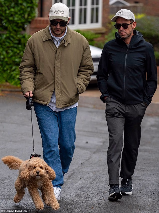 Mills e Vaughan sono finalmente usciti dalla loro proprietà da 1,5 milioni di sterline nell’Hertfordshire per portare a spasso il loro prezioso cavapoo dorato, Teddy