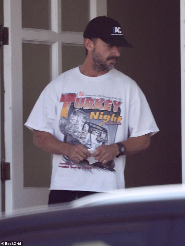 LaBeouf, che si è separato dai Mia Goth l’anno scorso, è arrivato a casa sua portando un vassoio pieno di bevande ghiacciate insieme a una borsa da viaggio.