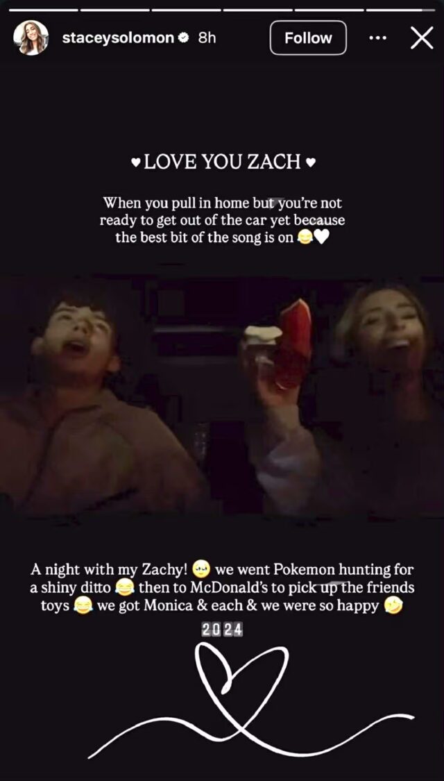 Ha aggiunto: “Una notte con il mio Zachy! [face holding back tears emoji] Siamo andati a Pokemon suggerendo un idem brillante [crying laughing emoji] poi a McDonald’s per ritirare i giocattoli di Associates [crying laughing emoji]. Abbiamo preso Monica ed eravamo così felici [crying laughing emoji].”