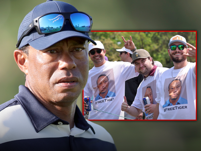 I più accaniti sostenitori del grande golf sono stati fotografati indossando magliette bianche embellish con la foto segnaletica di Tiger dal suo ultimo arresto venerdì per guida in stato di ebbrezza. Nella parte inferiore della maglietta è stato stampato un messaggio che diceva “#FreeTiger”.