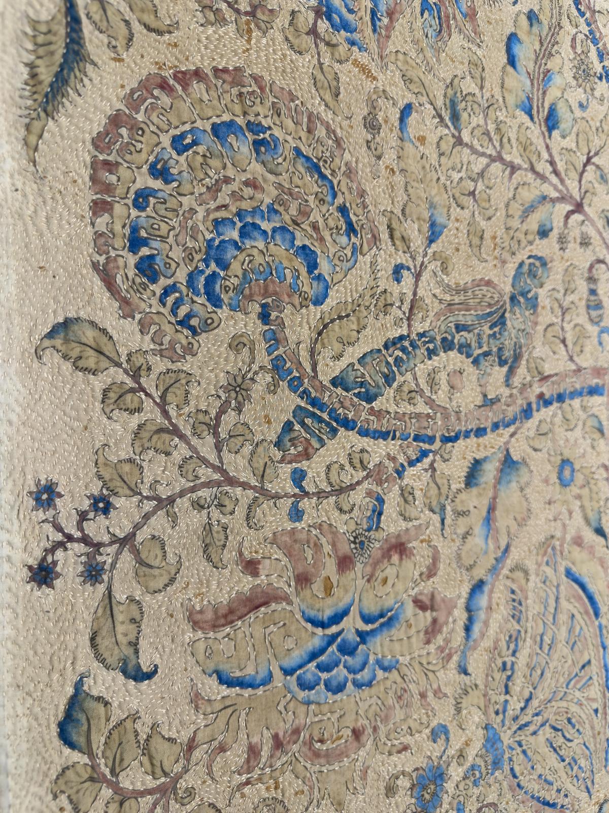 Non tutti i pezzi pongono il kantha in primo piano. Kanika ricorda di aver lavorato su un’opera d’arte danneggiata dell’Albero della Vita che period sbiadita e aveva cominciato a strapparsi. “Period molto fragile”, cube. “Lo abbiamo rivestito con stoffa, fili tinti in tono e abbiamo tracciato il disegno attraverso punti molto fini. Kantha non deve sempre essere l’eroe, può essere l’attore non protagonista.”