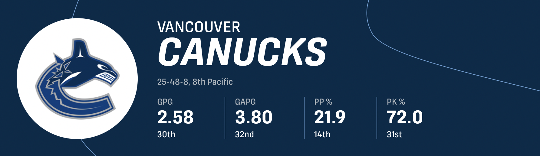 Vancouver non è arrivata ultima in assoluto per caso. La ripartizione statistica della squadra parla da sola.