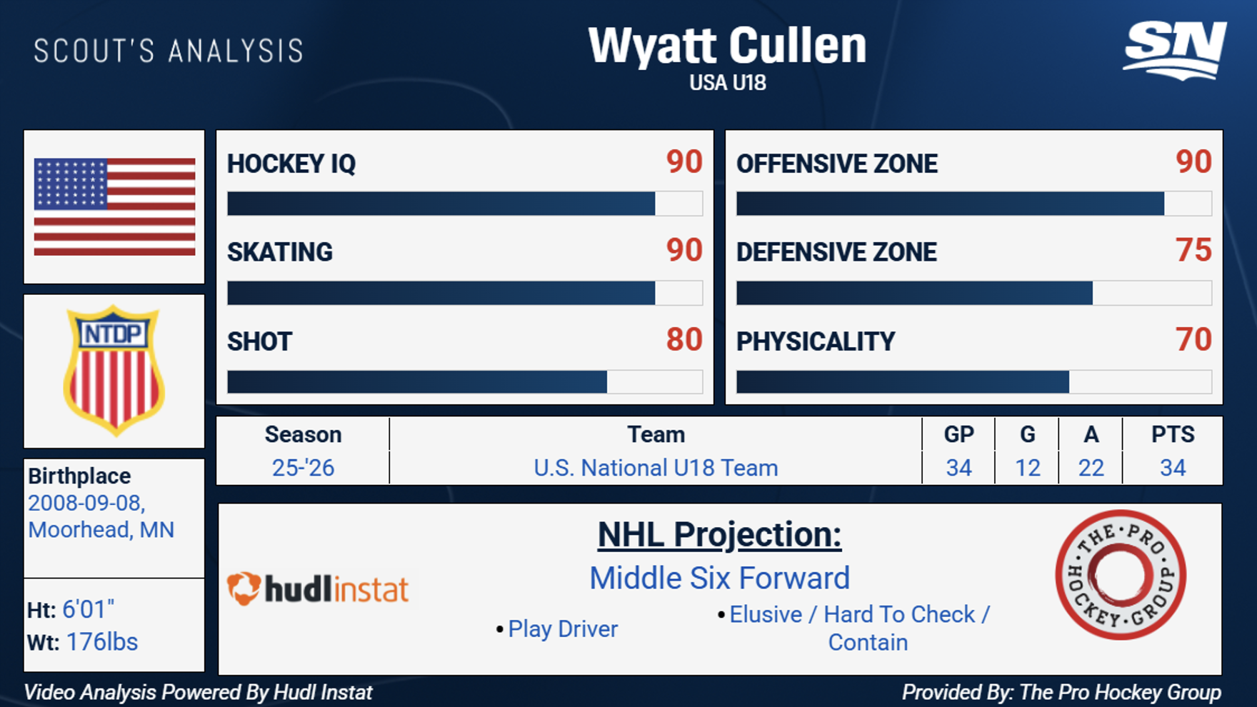 Wyatt Cullen, 6 piedi-1, 176 libbre, ala sinistra, USNTDP