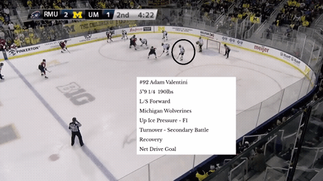 Valentini può giocare sia al centro che all’ala, ma al Michigan ha giocato soprattutto sulla fascia. È robusto e forte e non evita il contatto o la lotta per i dischi nelle aree dure del ghiaccio. La sua attenzione ai dettagli fuori dal disco è migliorata settimanalmente in questa stagione al Michigan, al punto che credo che il Workforce Canada possa avere la sicurezza necessaria per schierare Valentini in una varietà di ruoli nel torneo.