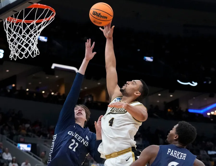 Ma Cox ha messo a segno una tripla d’angolo sul possesso successivo per iniziare un parziale di 10-0 per Purdue. Dopo che Chris Ashby ha messo a segno una tripla d’angolo chiudendo il tempo per il Queens sotto 45-33, Purdue (28-8) ha aperto un vantaggio di 56-36 con 17:17 rimasti sulla tripla di transizione di Loyer.