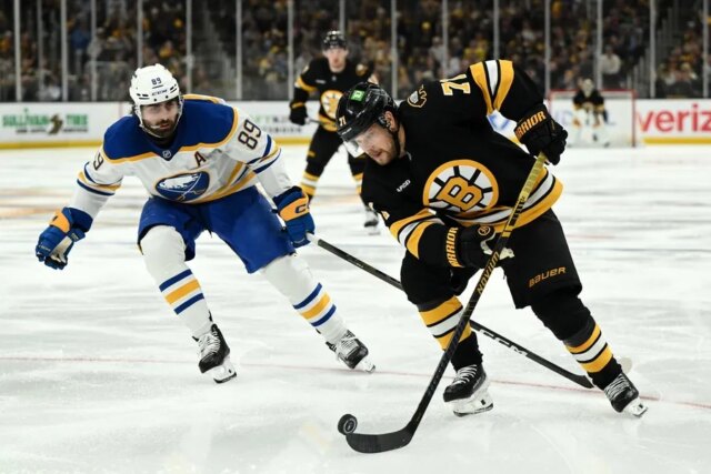 I Bruins erano in svantaggio di due partite a uno e si arrendevano per 4-0 ai Sabres dopo un periodo. I Sabres erano avanti 5-0 all’inizio del terzo.