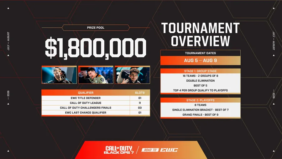 Le restanti quattro squadre includeranno i primi tre classificati delle finali CDL Challengers 2026 dal 17 al 19 luglio e il vincitore dell’EWC Final Probability Qualifier dal 31 luglio al 31 agosto. 1.