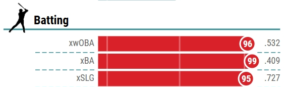 Una trama interessante da guardare sarà come gestirà i tiri advert alta velocità nelle prossime settimane, considerando che non ha dovuto affrontarli così tanto in Giappone. I primi rendimenti sono buoni dato che sta distruggendo assolutamente le palle veloci (.750 SLG con un .727 xSLG) ed entrambi i suoi fuoricampo sono arrivati contro riscaldatori di oltre 96 mph.