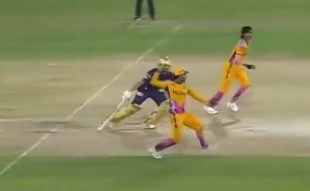 Dopo aver raccolto la palla, Yousaf inizialmente è corso verso l’estremità dell’attaccante per un tentativo di fuga, ma improvvisamente ha cambiato direzione e ha lanciato la palla verso l’estremità del non attaccante. Il lancio ha mancato i monconi, dando a Tariq un’ancora di salvezza poiché lo spinner period ben al di sotto della sua piega quando la palla ha superato i wicket.