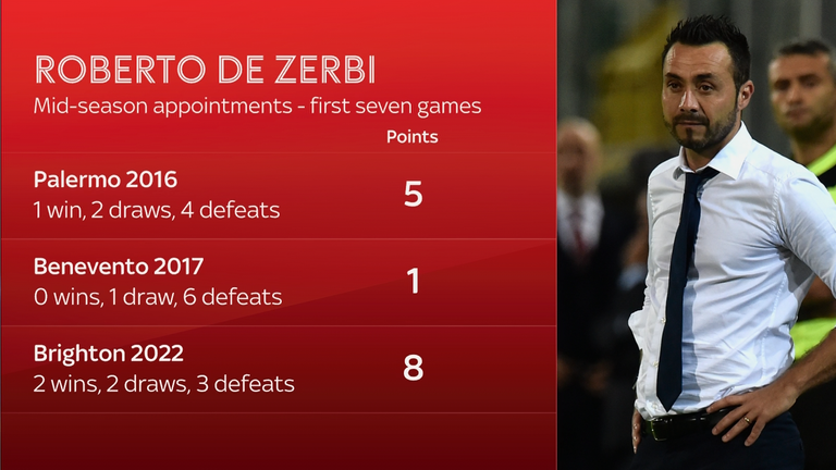L’italiano sta entrando in una situazione molto meno stabile di quella che ha ereditato a Brighton quando è subentrato a metà stagione a Graham Potter nel 2022 – ma ha comunque avuto bisogno di tempo per raccogliere punti sulla costa meridionale, non riuscendo a vincere nessuna delle sue prime cinque partite.