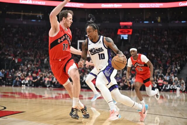 DeMar DeRozan e Valuable Achiuwa hanno segnato 28 punti ciascuno mercoledì sera mentre i Sacramento Kings in visita hanno sbalordito la loro ex squadra, i Toronto Raptors, 123-115.