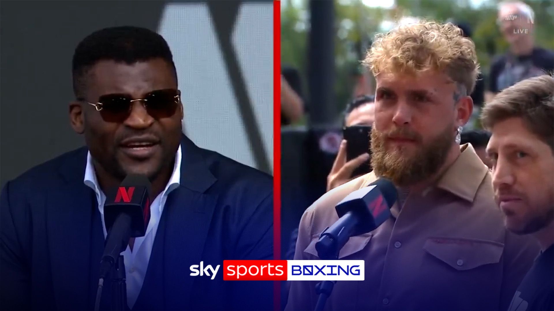 Jake Paul ha provocato un’accesa risposta da parte di Francis Ngannou quando si sono scambiati parole alla conferenza stampa Rousey vs Carano. Credito: promozioni di maggior valore e Netflix