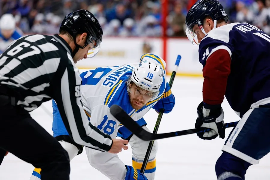 Robert Thomas ha segnato con 2:50 rimanenti nel terzo periodo come parte della sua prima tripletta in carriera che ha portato i Blues alla vittoria in trasferta per 3-2 sul Colorado domenica.