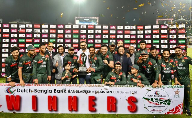 Domenica il Bangladesh ha sconfitto il Pakistan per 11 punti in un emozionante terzo ODI allo stadio nazionale di Sher-e-Bangla, assicurandosi la serie di tre partite per 2-1. Battendo per primo, il Bangladesh ha registrato un totale competitivo di 290/5 nei 50 over assegnati. L’inning è stato ancorato da un secolo brillante di Tanzid Hasan Tamim, il cui elegante gioco di colpi ha dato il tono all’inning. Litton Das ha fornito un costante 41, mentre Towhid Hridoy ha contribuito con un vitale 48, assicurando che il Bangladesh mantenga lo slancio nella fase centrale. Gli sforzi di partenariato e la tempestiva accelerazione nelle fasi finali hanno aiutato il Bangladesh a fissare un obiettivo impegnativo per il Pakistan. In risposta, il Pakistan ha mostrato resilienza, con Salman Agha che ha prodotto un secolo di combattimenti per mantenere la sua squadra in lizza. Anche Saad Masood (38) e Shaheen Afridi (37) hanno aggiunto punti cruciali, ma l’inseguimento è fallito quando i giocatori di bowling del Bangladesh hanno colpito nei momenti critici.