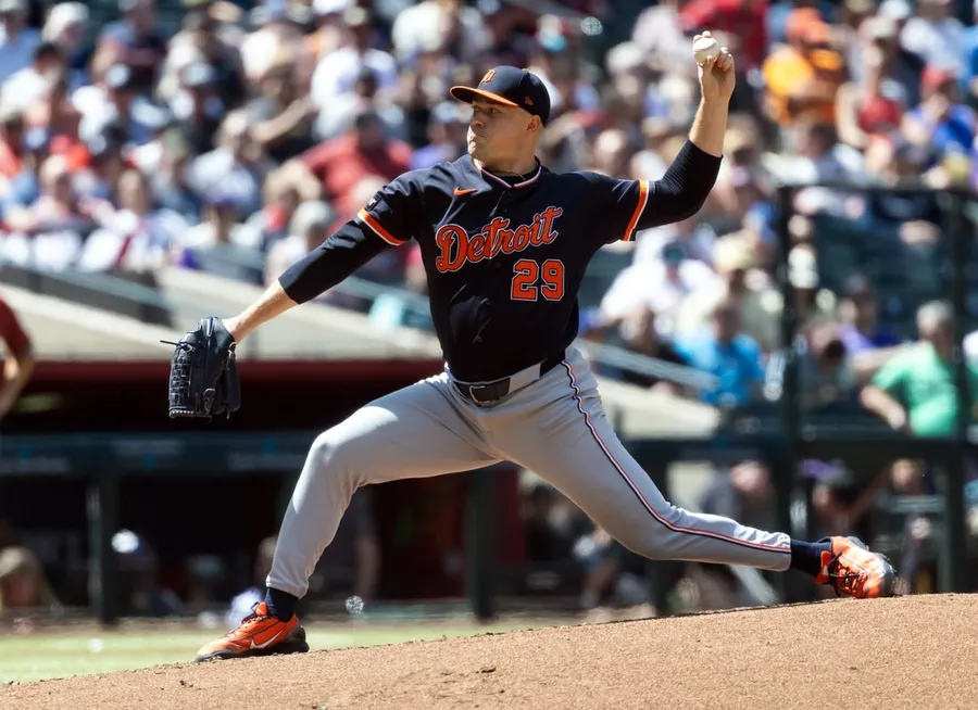 1 aprile 2026; Phoenix, Arizona, Stati Uniti; Il lanciatore dei Detroit Tigers Tarik Skubal contro gli Arizona Diamondbacks al Chase Discipline. Credito obbligatorio: Immagini Mark J. Rebilas-Imagn