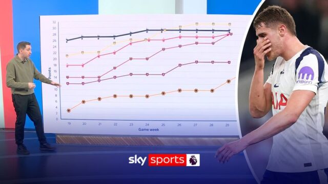 La nostra tabella “prevista”, basata su Sky Sport Formulation xG, ha i rivali retrocessione del West Ham sopra di loro. Gli Spurs sono alla pari con i Wolves per i punti previsti e davanti a Nottingham Forest, Sunderland e Burnley, che occupano gli ultimi tre posti.