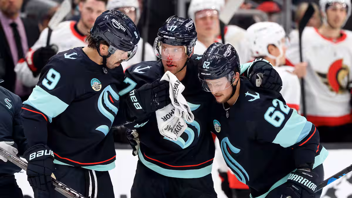 I partigiani del Kraken hanno trattenuto il loro soufflé, proprio come a Seattle, quando l’attaccante Jaden Schwartz è apparso sul ghiaccio dopo aver ricevuto un colpo di patina sul viso.