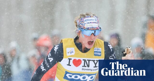 Jessie Diggins reagisce dopo la gara di venerdì a Lake Placid, New York. Fotografia: Robert F Bukaty/AP