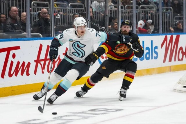Dopo che i Canucks hanno pareggiato, McMann ha segnato nel energy play alle 19:10 del primo periodo portando Seattle in vantaggio per sempre.