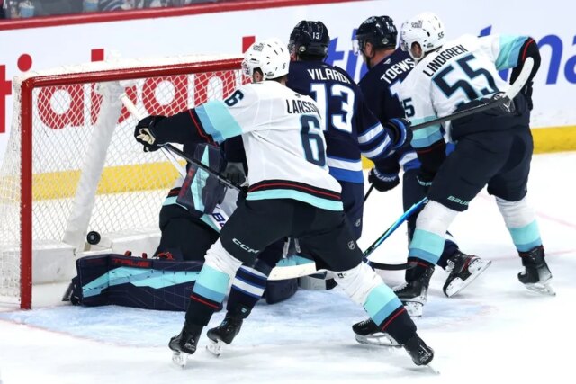Le pause hanno continuato advert andare a favore di Winnipeg con altri due gol in power-play, a cominciare dal conteggio di Vilardi al 9:55 nel secondo periodo. Il passaggio di Toews viene deviato da due giocatori del Kraken prima che Vilardi depositasse il disco vagante. Poco più di due minuti dopo, il tiro di Connor viene deviato in rete dal difensore del Seattle Ryan Lindgren.