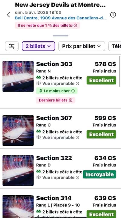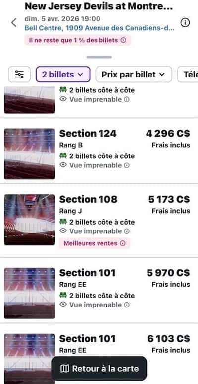 La coppia di biglietti la meno cara per l’incontro al Centre Bell viene venduta a circa 600 $ sulle piattaforme di vendita Ticketmaster e StubHub, verso le 11:30 di mattina mattina.