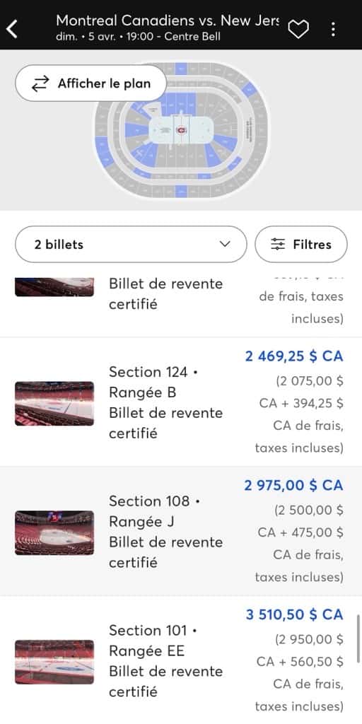 La coppia di biglietti la meno cara per l’incontro al Centre Bell viene venduta a circa 600 $ sulle piattaforme di vendita Ticketmaster e StubHub, verso le 11:30 di mattina mattina.