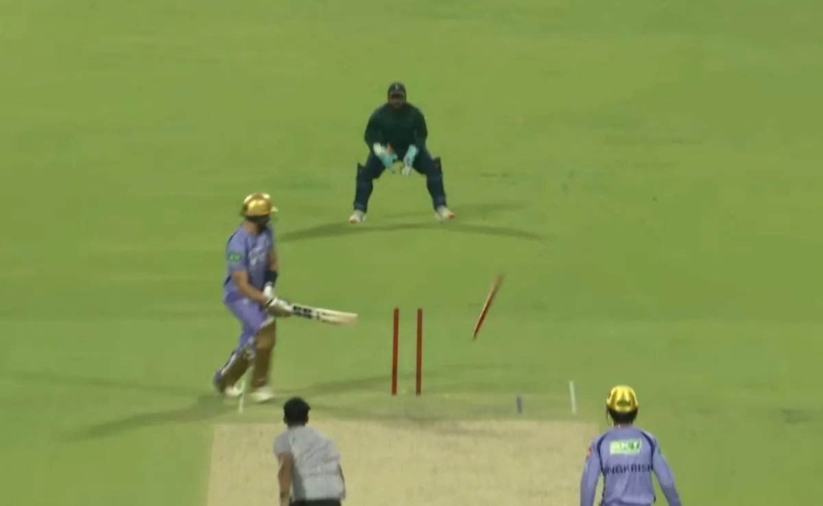 Il 26enne si è spostato in fuorigioco per tentare un paddle scoop, ma è stato battuto dal ritmo mentre la palla veniva deviata dalla mazza sui monconi. Saini, rimasto invenduto durante l’asta IPL 2026, è con il crew KKR prima della stagione come giocatore di bowling.